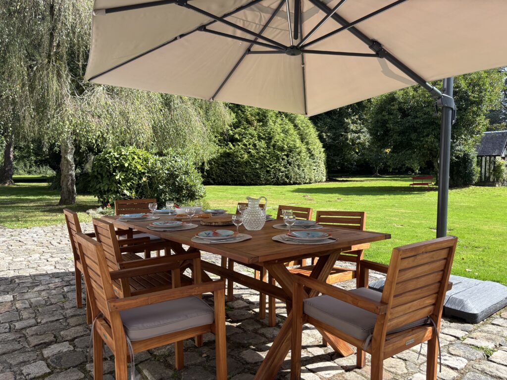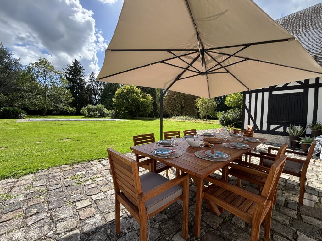 À l’extérieur, profitez d’un immense jardin sans aucun vis-à-vis, idéal pour vous ressourcer en toute tranquillité. La piscine chauffée (ouverte et chauffée de mai à septembre) vous invite à la détente tout au long de la belle saison. Vous disposerez également d’une grande terrasse aménagée avec un salon de jardin, une table et des chaises pour partager de délicieux repas en famille ou entre amis. Un barbecue est à votre disposition pour vos grillades d’été, ainsi qu’une balançoire pour les plus petits et un parasol pour profiter de l’ombre les jours de grand soleil. Vous bénéficierez aussi d’une grande cour sécurisée par un portail électrique, pouvant accueillir jusqu’à six véhicules.