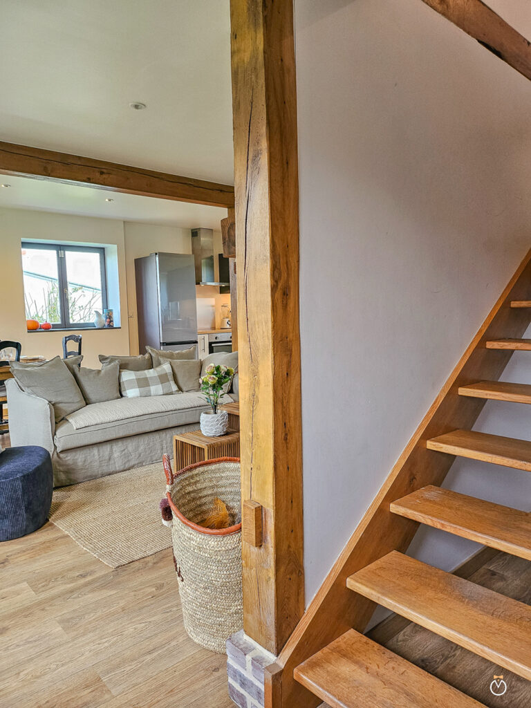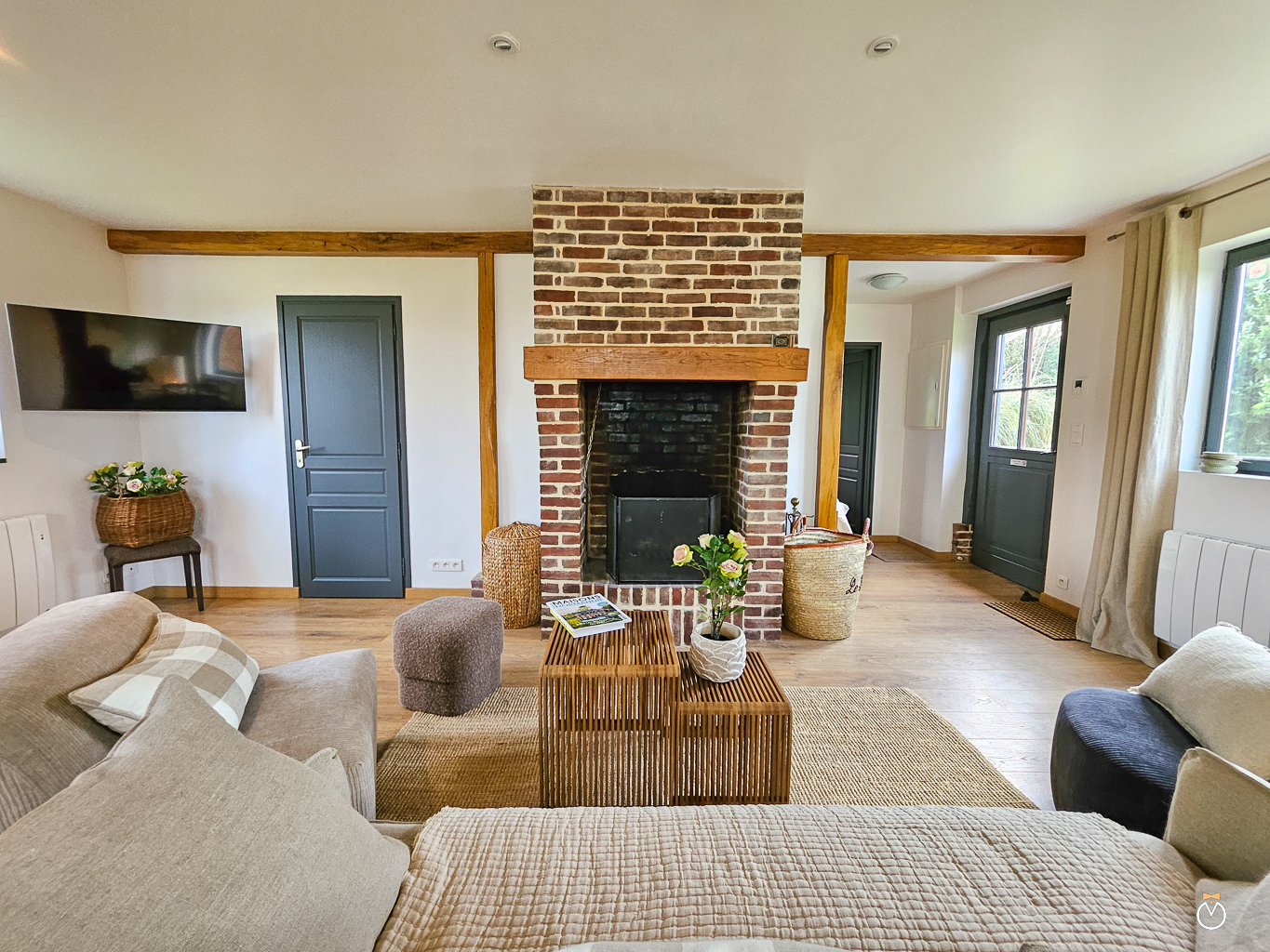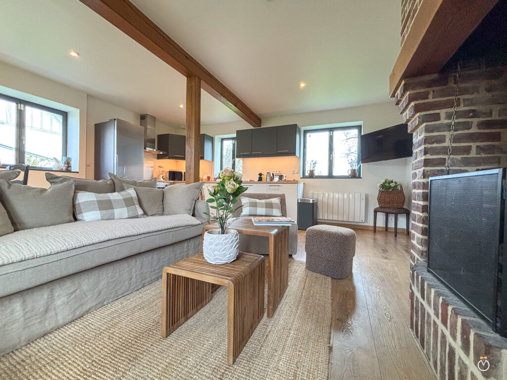 Dès l’entrée, vous découvrirez une agréable pièce de vie, lumineuse et conviviale, composée d’un séjour avec une cuisine ouverte entièrement équipée et un espace salle à manger. Le salon, agrémenté d’une cheminée, invite à la détente et crée une atmosphère chaleureuse, idéale pour partager de bons moments en famille ou entre amis après une journée de découverte dans la région.