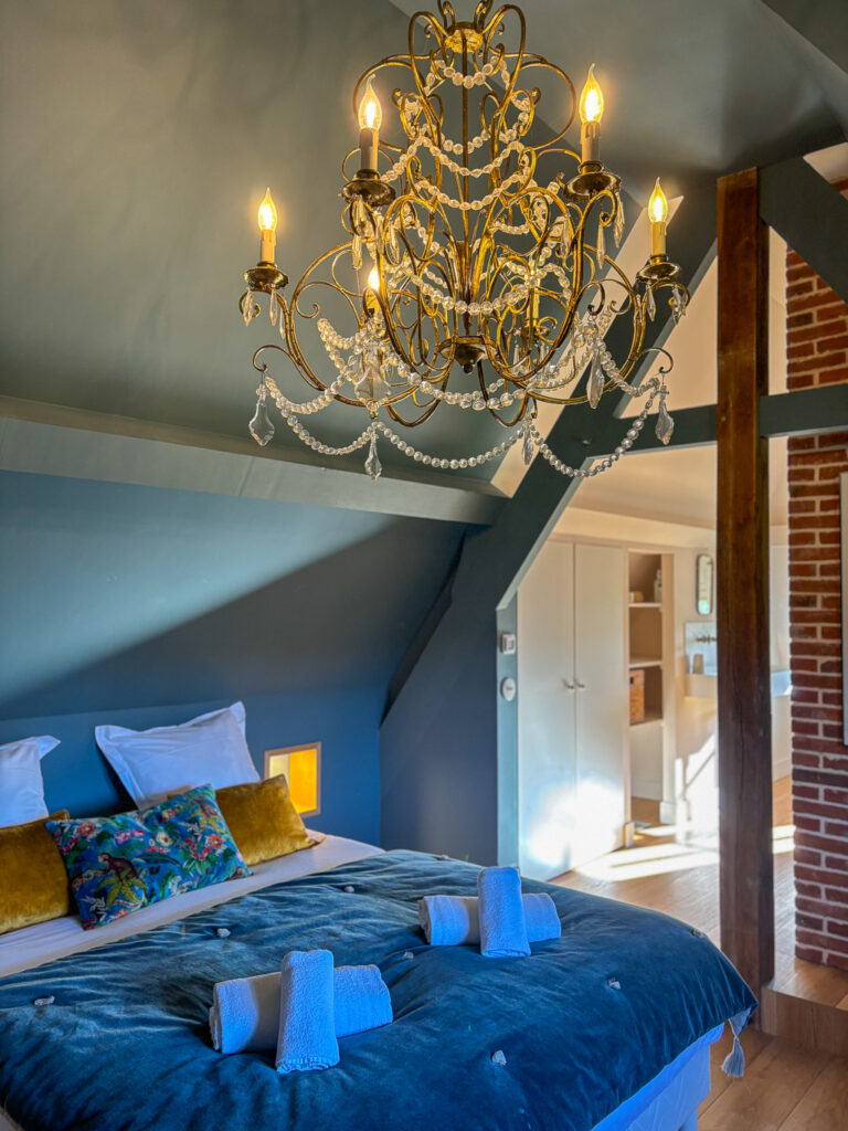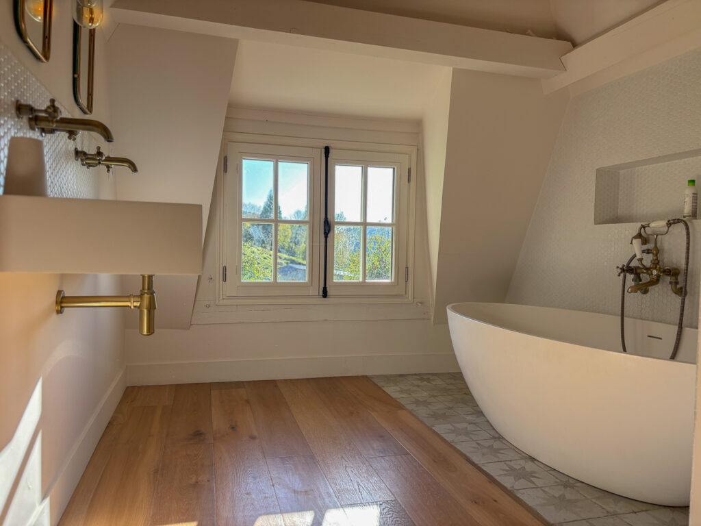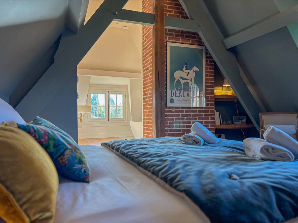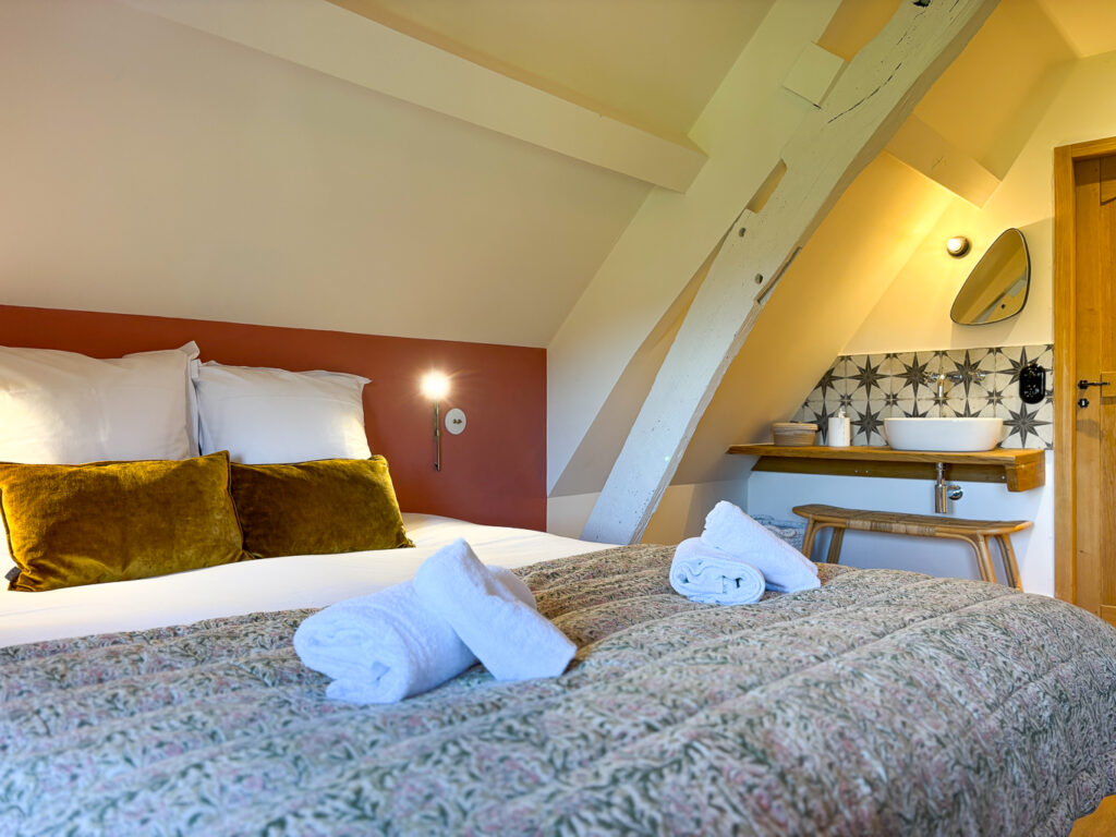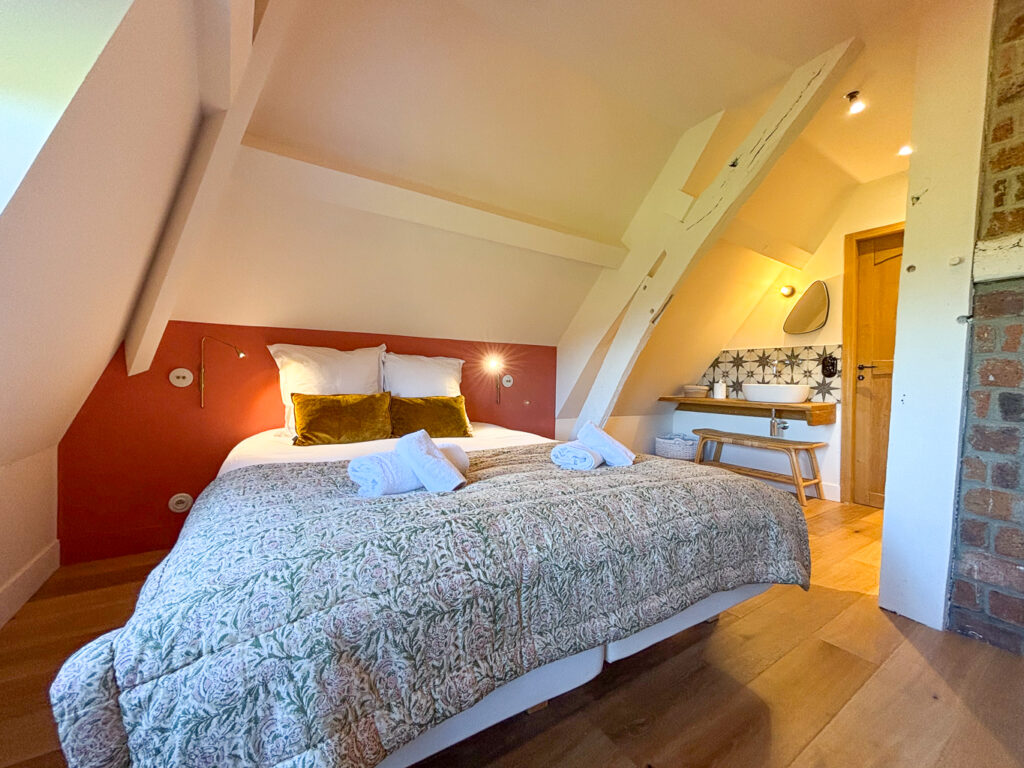 - Une chambre double avec lit 160×200 et sa salle de bain avec baignoire et WC
