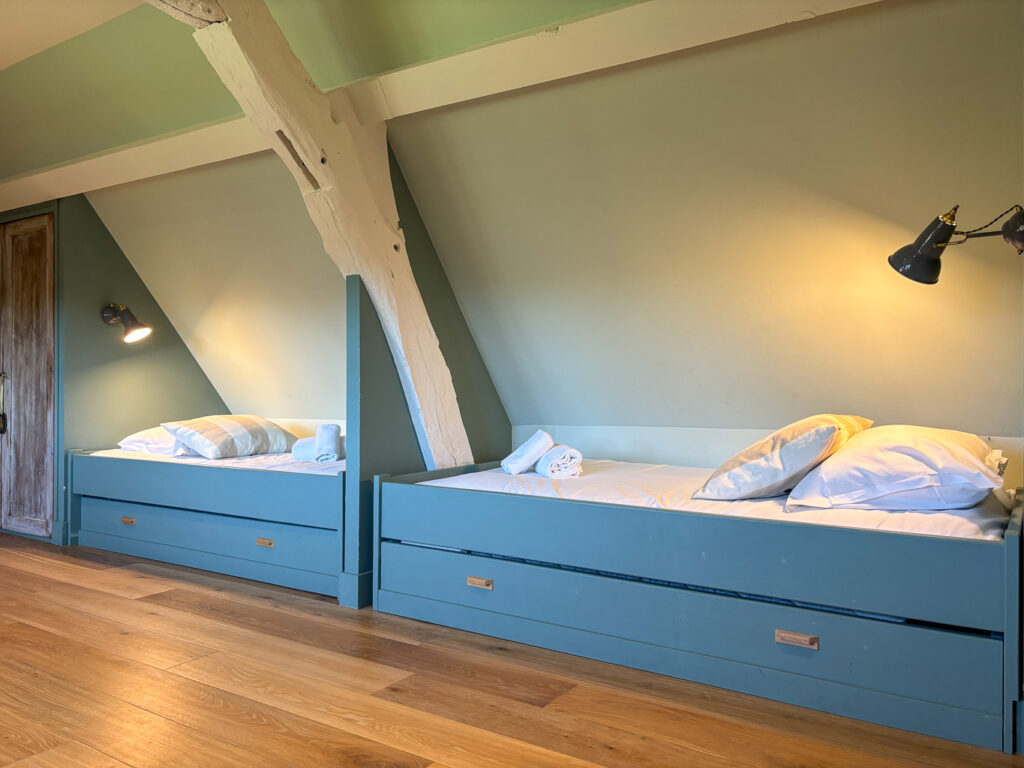 - Un dortoir avec 4 lits simples 90×200, une salle de bain avec douche et WC