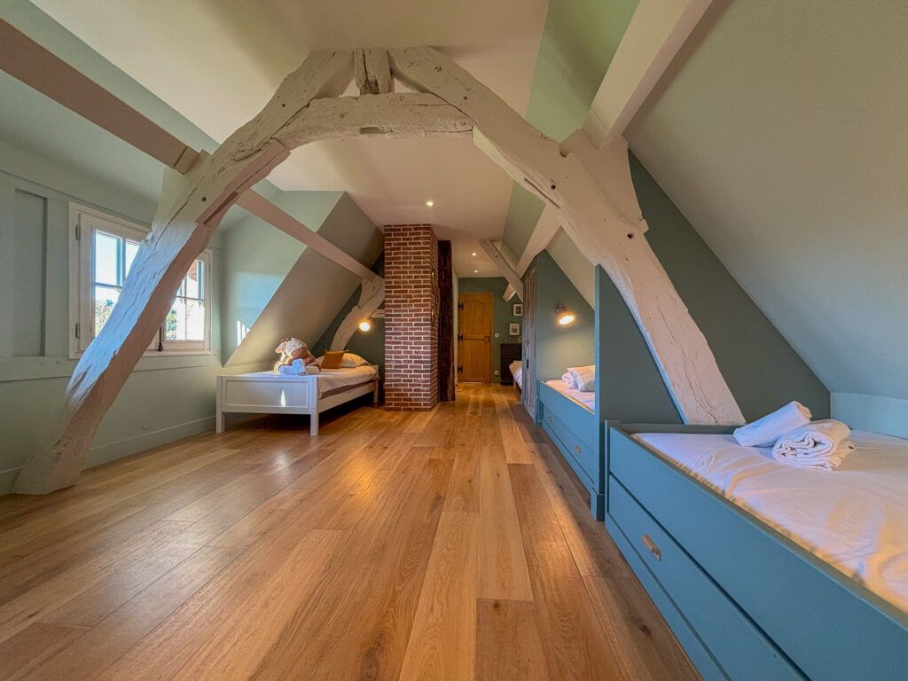 À seulement 10 minutes d’Honfleur, de ses galeries et de ses plages, dans un joli hameau au cœur du bocage normand, cette maison est l’endroit idéal pour vous détendre en famille ou entre amis. Entièrement rénovée en 2020, cette charmante chaumière allie élégance et confort. Idéalement située à 9 km d’Honfleur, 15 km de Pont-l’Évêque, 25 km de Deauville-Trouville, et à 4 km du centre-ville de Beuzeville avec ses commerces, la maison dispose d’une terrasse couverte et d’une piscine chauffée, vous offrant un cadre parfait pour des souvenirs inoubliables.