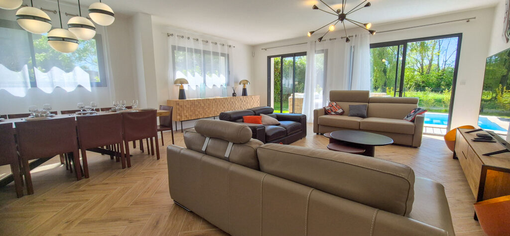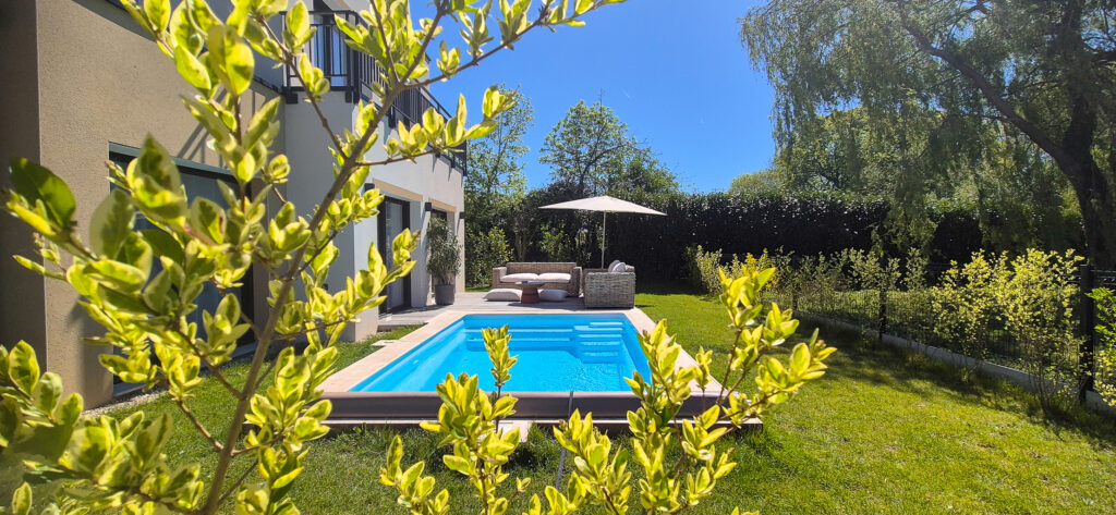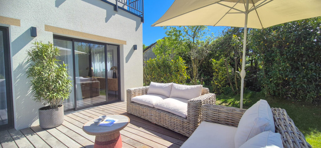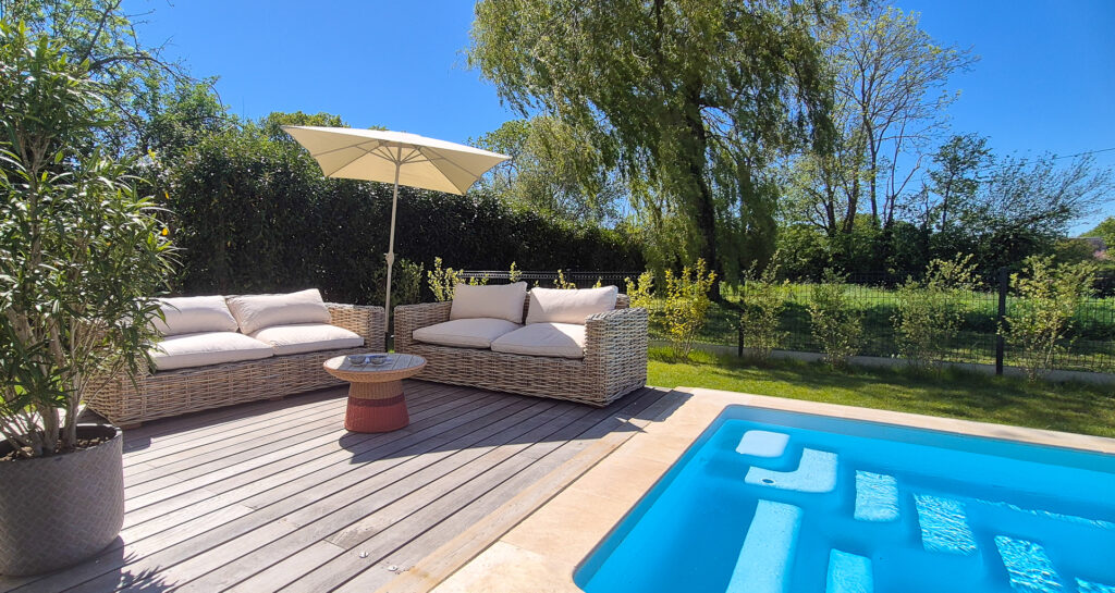 À l’extérieur, tout est réuni pour vous détendre ou vous amuser. Installez-vous sur la terrasse exposée sud et profitez du cadre apaisant ! Vous pourrez également plonger dans la piscine privative (chauffée de début avril jusqu’à fin septembre).