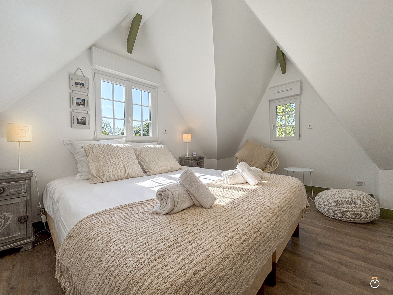 – Une chambre double (160×200 cm), spacieuse et lumineuse, idéale pour se reposer après une journée de découvertes.